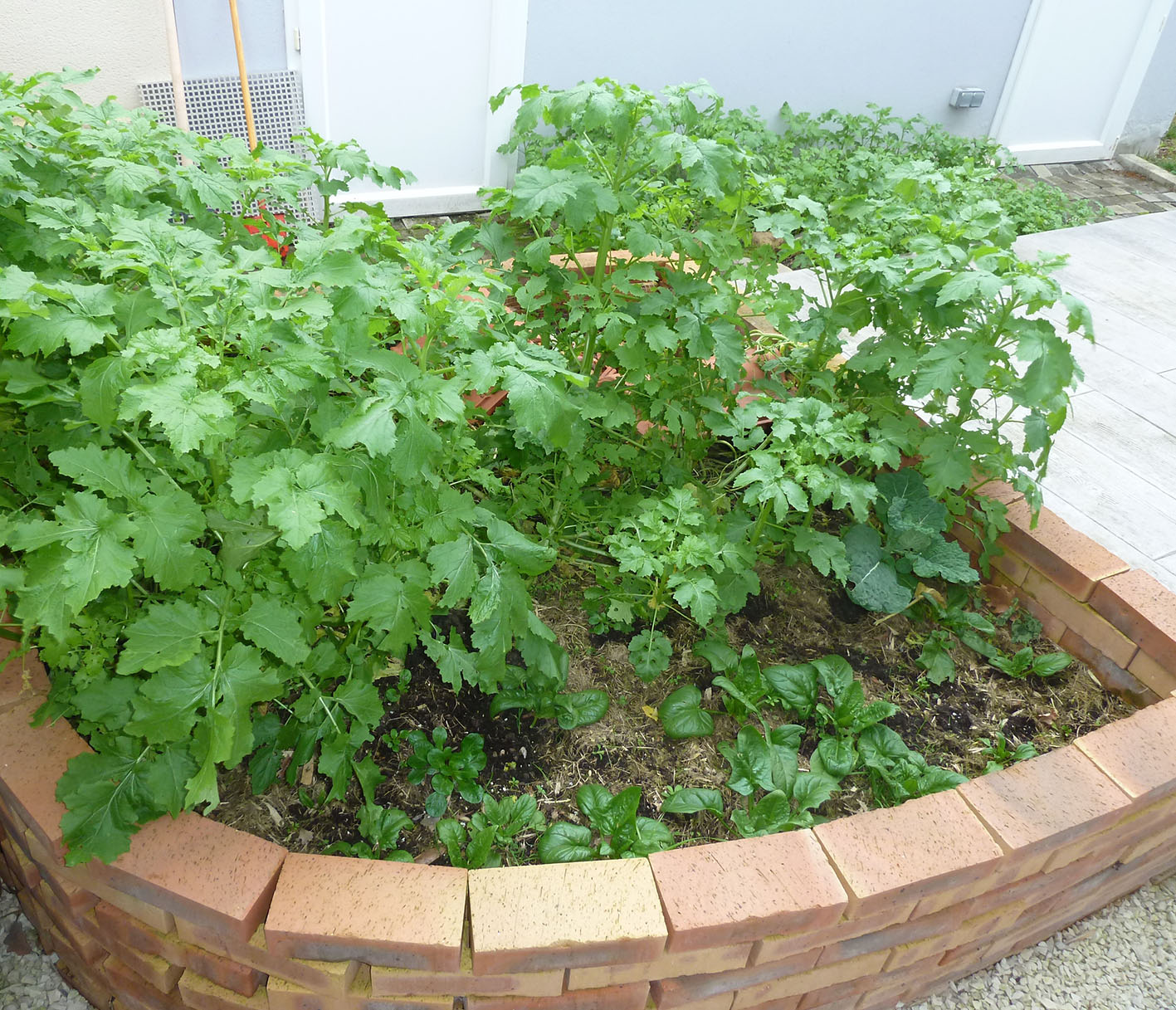 Cet hiver, des épinards, de la mâche et de la moutarde ont été cultivés. Les épinards permettent de fixer l’azote dans le sol et la moutarde est un engrais naturel dont les racines structurent la terre.