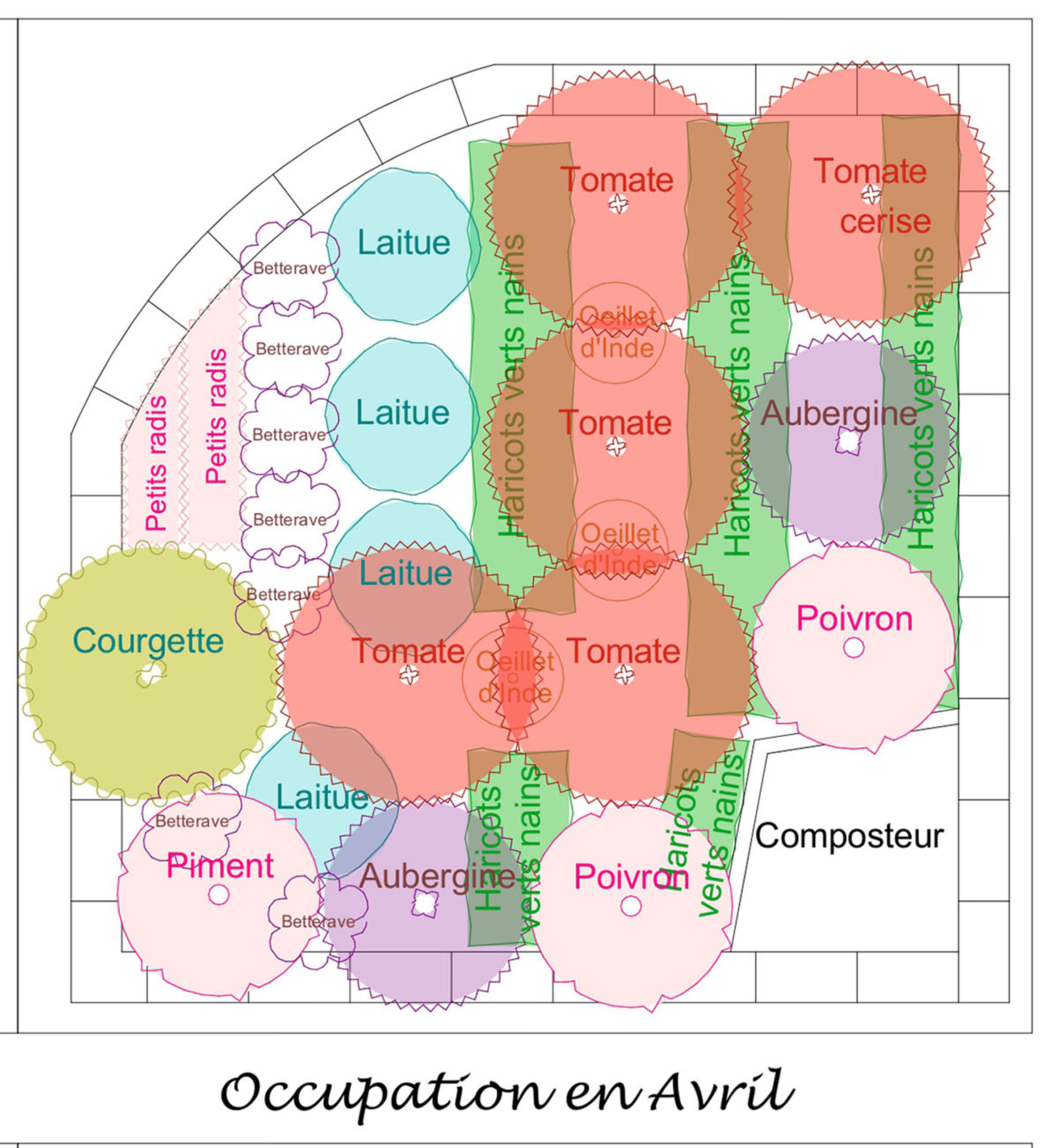 Ces dessins et cette disposition des plantes restent très théoriques. En effet, comme toute entité vivante, un potager reste soumis aux aléas de son environnement et du climat.