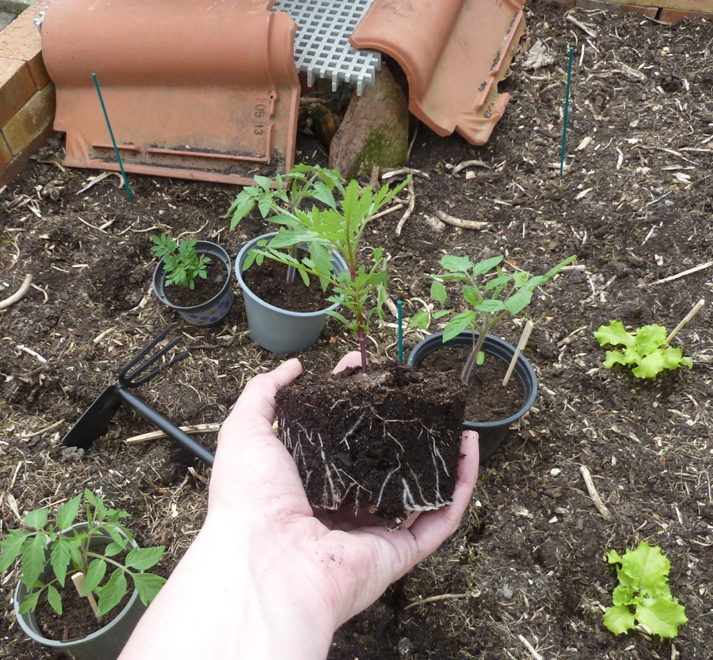 Début mars, soit 4 semaines après les semis, les plantules ont été rempotées en pots de culture.