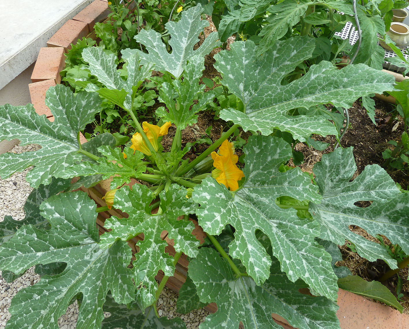 Le pied de courgette devient un peu encombrant au fur et à mesure de sa croissance. Pour libérer de l’espace pour d’autres cultures, la pousse du plant est dirigée vers l’extérieur du micro potager.