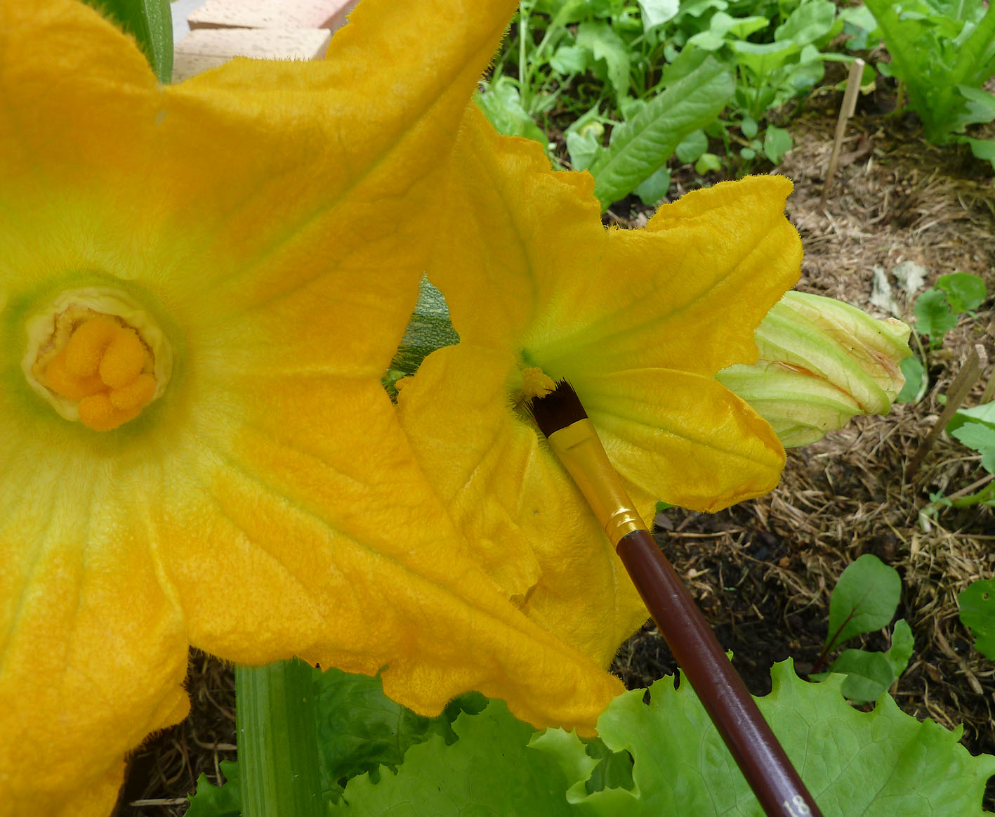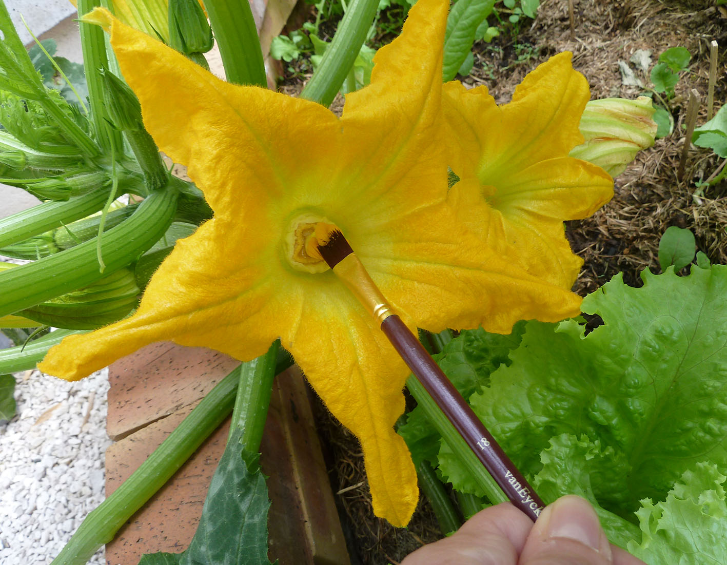 Néanmoins, nous avons procédé à des pollinisations artificielles avec un pinceau, en récupérant le pollen d’une fleur mâle pour l’appliquer sur le stigmate des fleurs femelles.