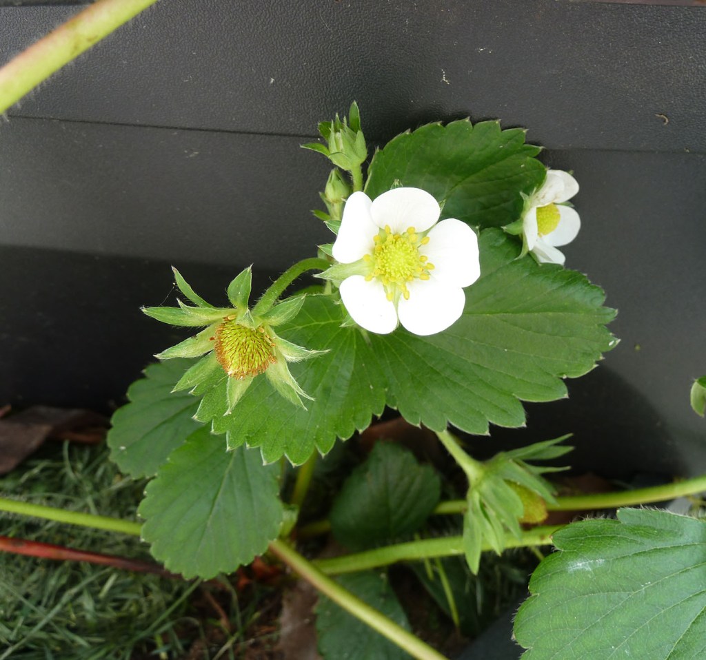 Les températures très basses du mois d’avril (aux alentours de 2°C la nuit), nous ont donné quelques frayeurs. Protégé par une cloche plastique, le plant a survécu et les premiers fruits sont apparus début mai.