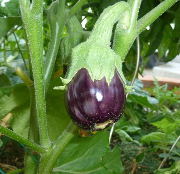 Concernant les aubergines, l’arrivée de la chaleur au mois de juin, associée au purin de banane ont dynamisé l’apparition de fleurs et de fruits. De tous les légumes cultivés, ce sont les deux aubergines qui donnent, pour le moment, le meilleur résultat avec 6 à 8 fruits récoltés par pied, à la mi août.
