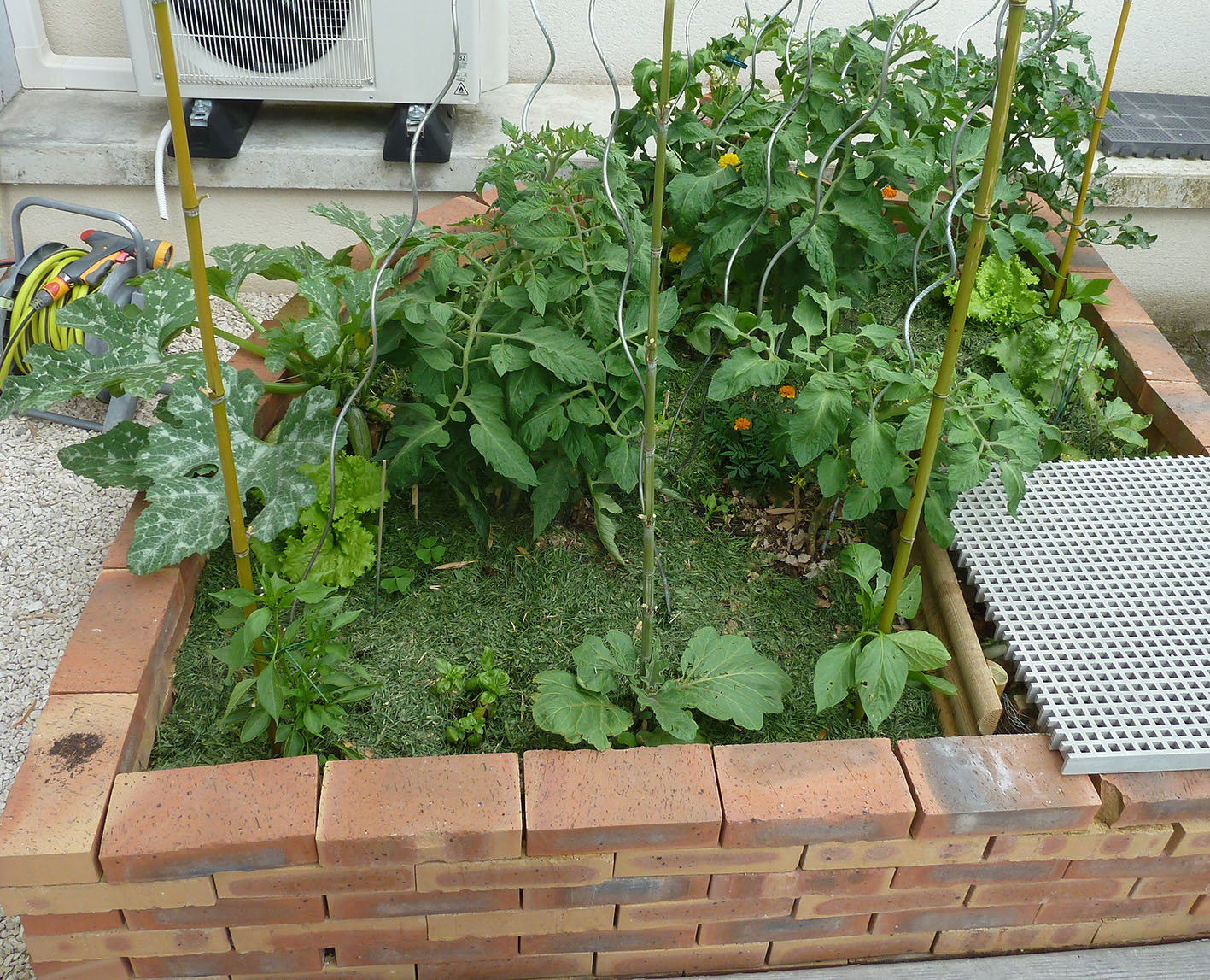 Souvenez vous : début avril, les plants semés en février ont été repiqués dans l’espace de culture, en suivant les schémas d’association des plantes, définis en fin d’hiver (Cf. les articles Planifier les cultures du micro potager et La mise en place des cultures).
