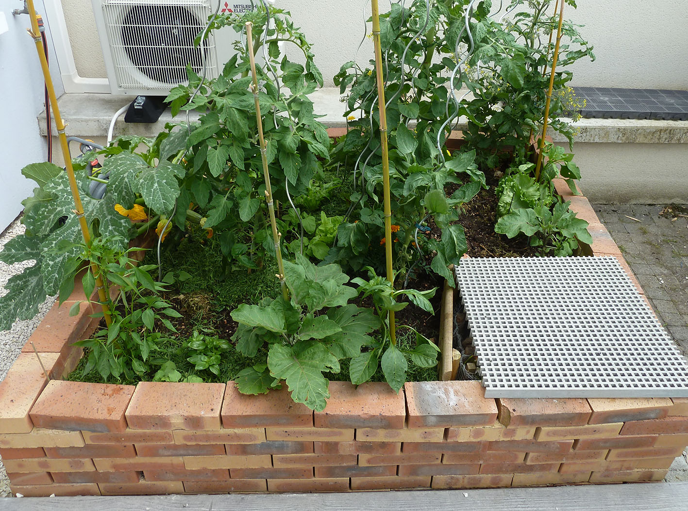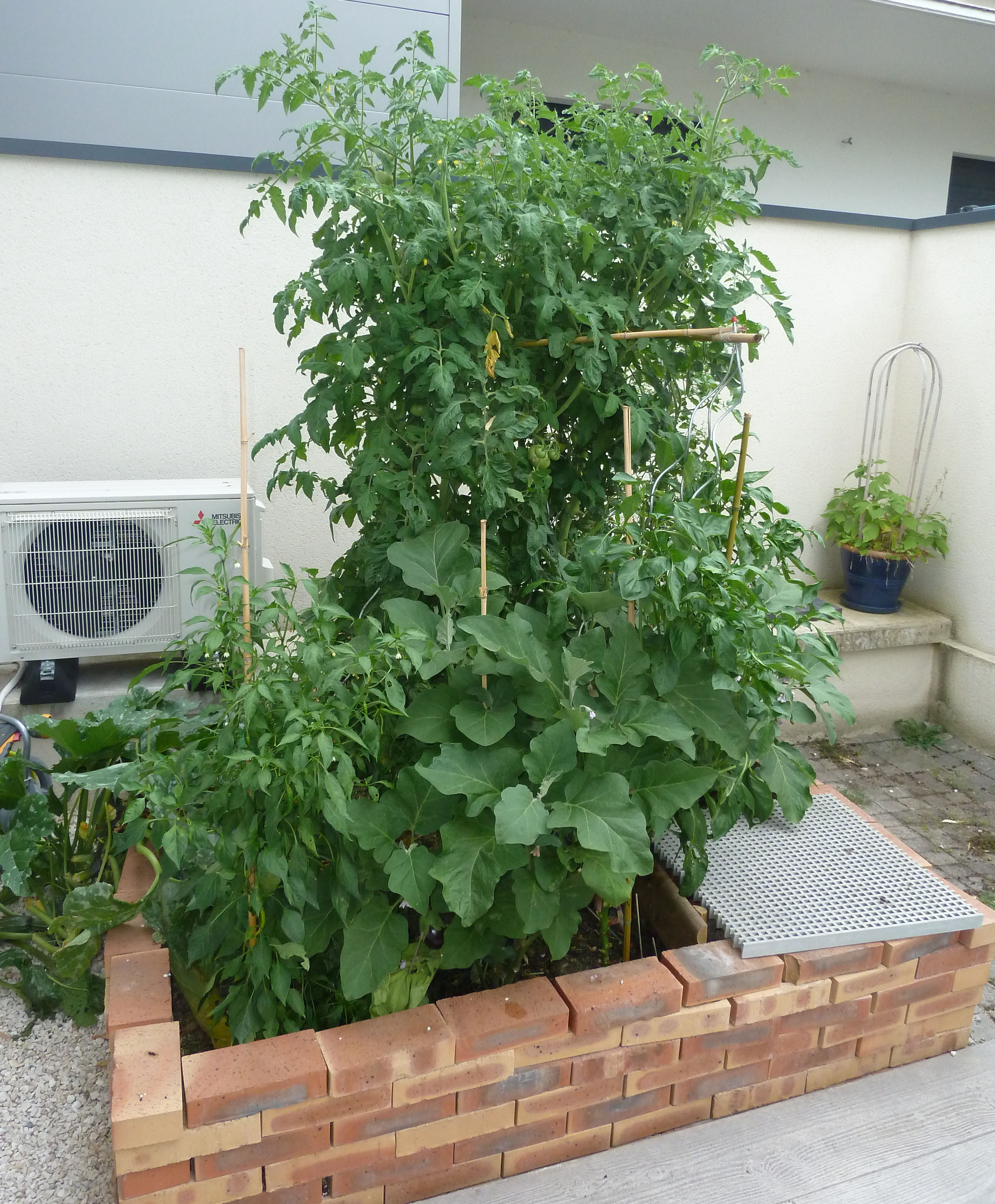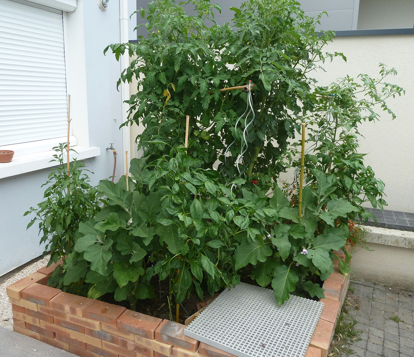 Un sol riche et vivant reste la meilleure prévention des maladies des plantes. Bien qu’il ait abondamment plu aux mois d’avril et mai, il n’y a pas de trace de mildiou sur les plants de tomate ou d’aubergine. Globalement les plantations ont bien résisté au froid et à la pluie : seule la croissance des piments, poivrons et aubergines a été ralentie.