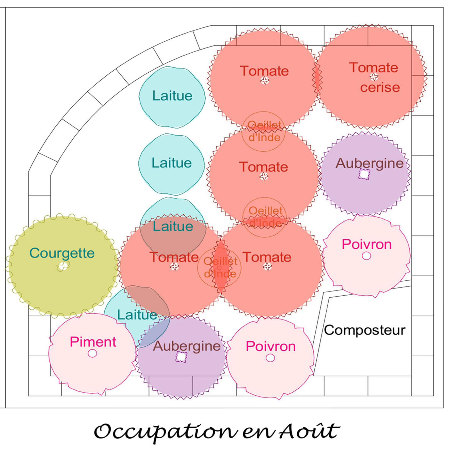 Les tomates, poivrons, piments et aubergines donnent des résultats satisfaisants, en dépit d’une météo printanière peu favorable. La récolte de laitues ralentit en ce milieu d’été mais l’année prochaine, une variété résistante à la chaleur sera testée : les semis seront organisés de manière à mieux optimiser laitues de printemps, d’été et d’automne. En ce mois d’août on prépare déjà les cultures d’hiver. Le prochain article traitera des semis des légumes d’automne hiver et de la transition entre cultures d’été et d’automne : comment le micro potager se réorganise pour optimiser les cultures.