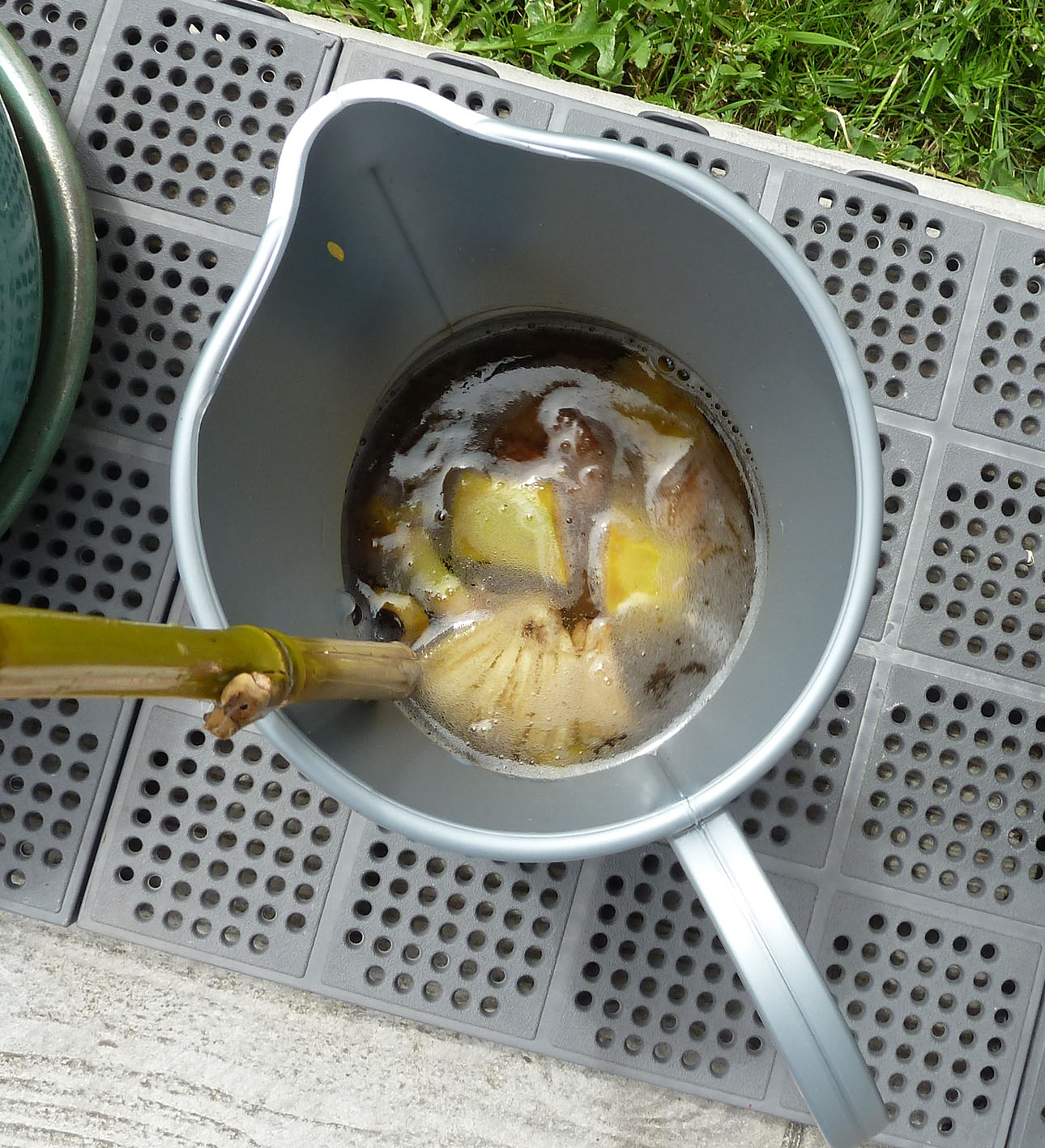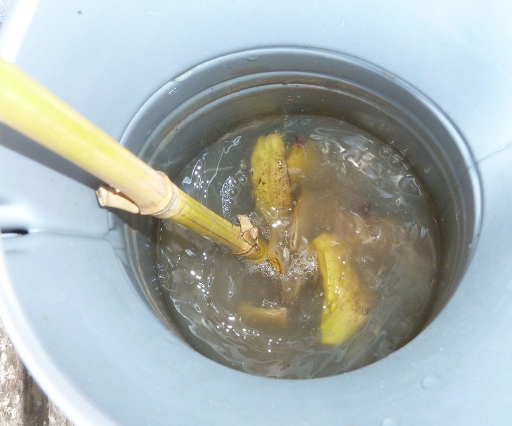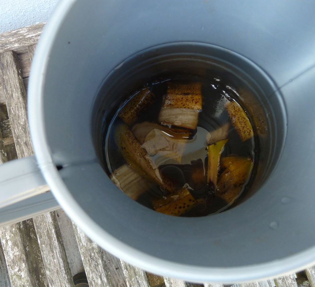 Faites macérer une peau de banane pour un litre d’eau dans un seau ou autre contenant. Mélangez tous les jours la macération : de petites bulles remontent à la surface, signe d’une fermentation de la mixture. Lorsque ces petites bulles n’apparaissent plus lors du mélange, le purin est prêt. Vous pouvez arroser directement vos plants avec, en évitant les feuilles. Les peaux de bananes peuvent être mises au composteur ou placées aux pieds des plants de légumes.