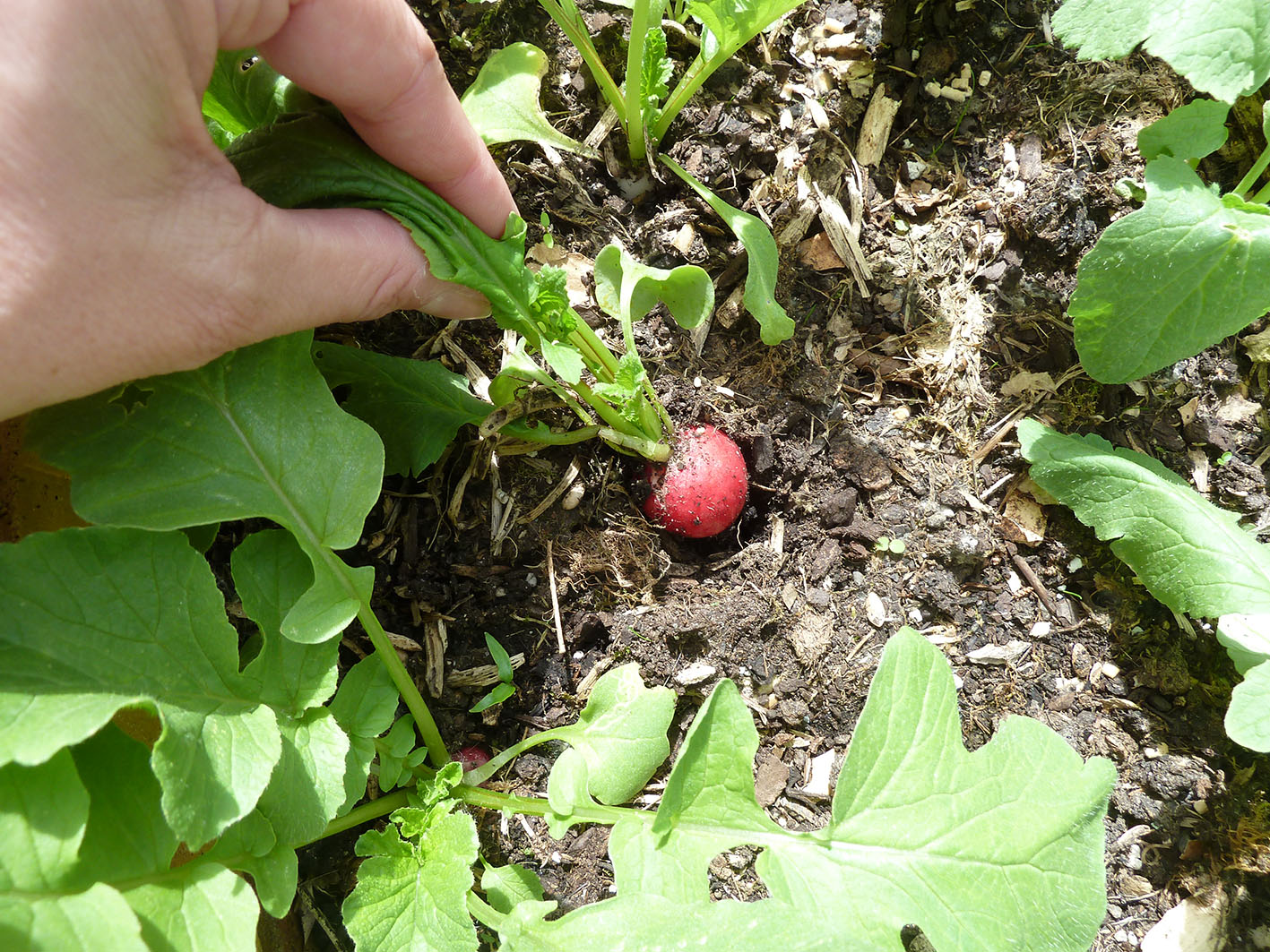 Trois semis en pleine terre ont été réalisés et ont donné lieu à trois récoltes satisfaisantes. Le petit radis n’apprécie pas trop la chaleur : les semis ont été arrêtés à la mi-mai pour laisser plus de place aux laitues.