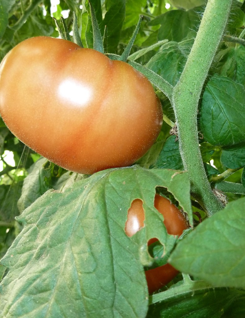 Les plants de tomate n’ont pas été arrosés directement depuis leur repiquage, afin de favoriser leur goût et leur teneur en sucre. L’absence d’arrosage régulier a probablement entrainé un défaut d’absorption du calcium et quelques fruits présentent une nécrose apicale appelée aussi « cul noir ».