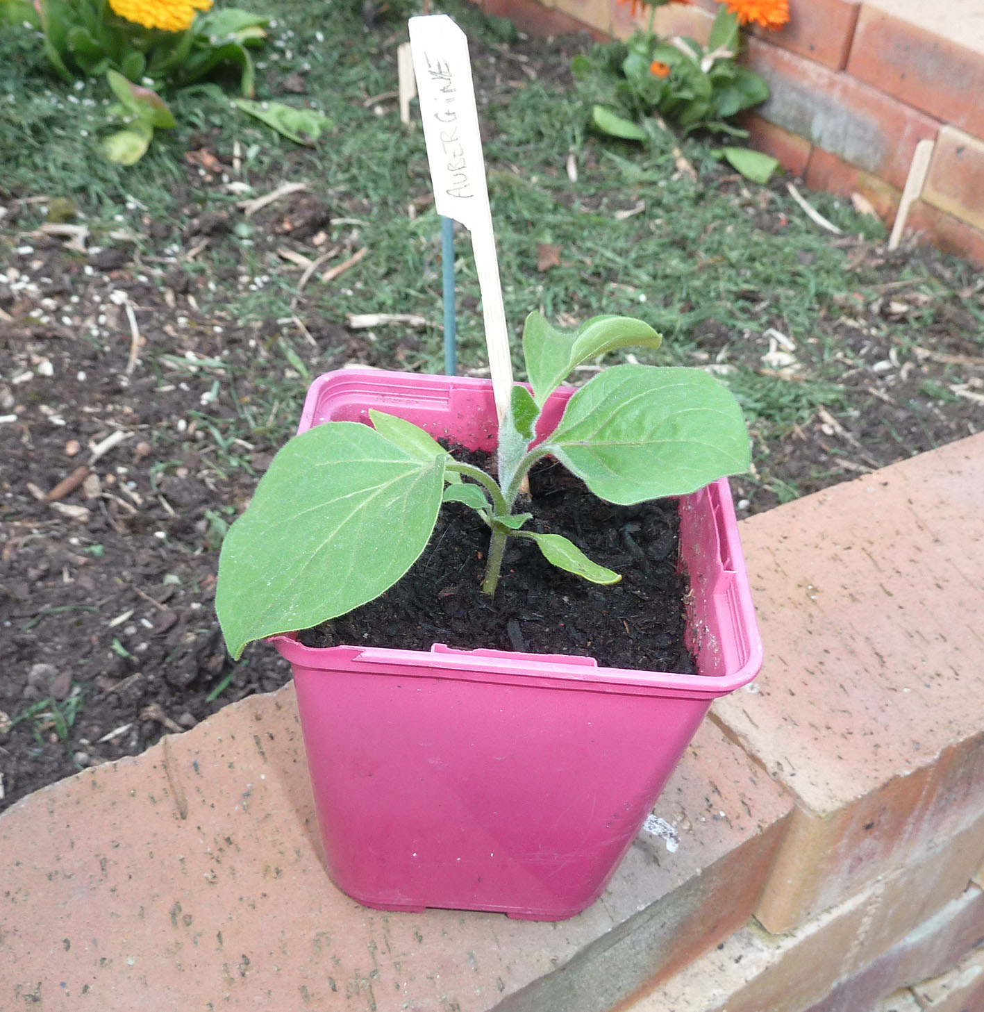 Il est tout à fait possible de cultiver l’aubergine en pot : prévoyez un contenant d’environ 40 cm de diamètre et 50 cm de haut. Votre pied d’aubergine atteindra 80 cm environ. Pour éviter qu’il ne casse sous un coup de vent, mettez en place dès à présent un tuteur. Si les nuits sont encore fraiches (moins de 12°C), il vaut mieux protéger votre plant : une boite de rangement en plastique opaque retournée, peut faire l’affaire en servant de serre.
