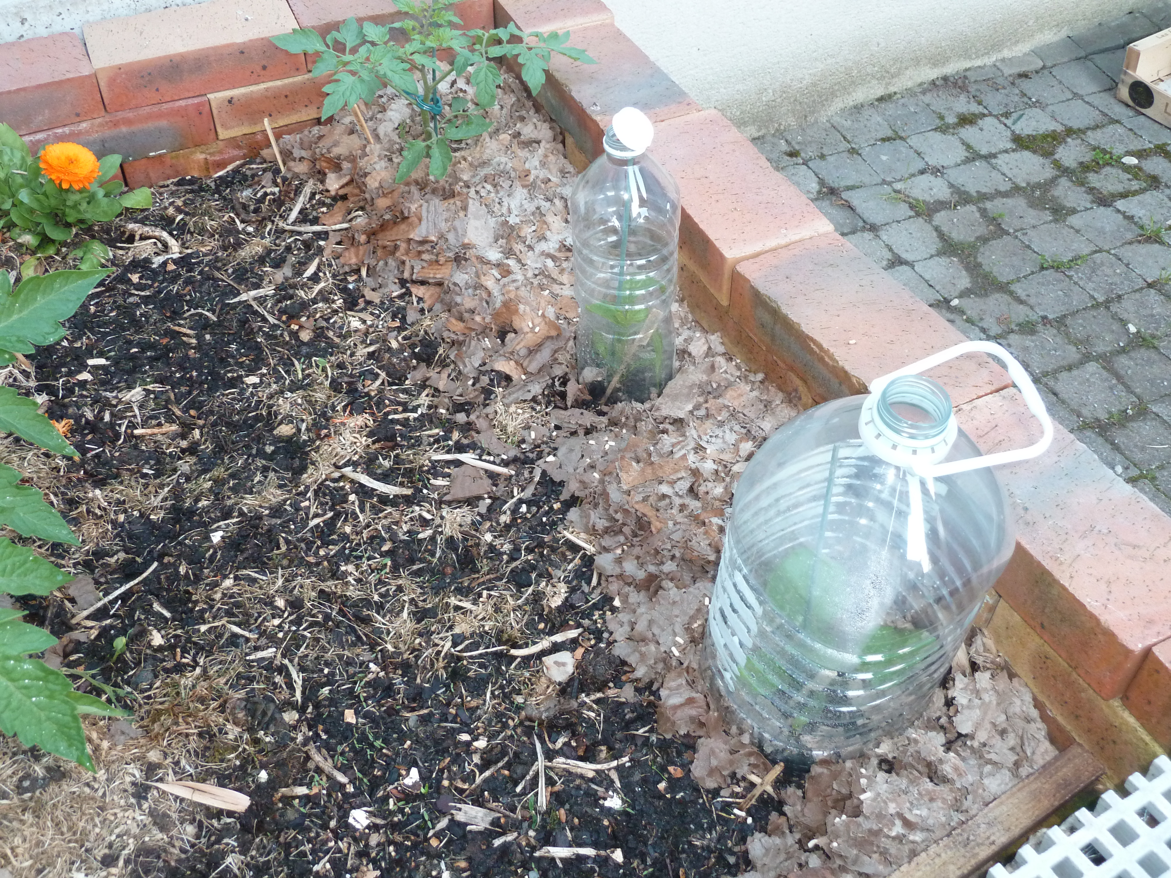 Maintenez la terre un peu humide au pied de vos plants : retirez le paillage et binez en périphérie du pied une fois par semaine puis replacez le paillage. Lorsque les premières fleurs et fruits apparaissent vous pouvez fertiliser avec un purin de banane ou de consoude.