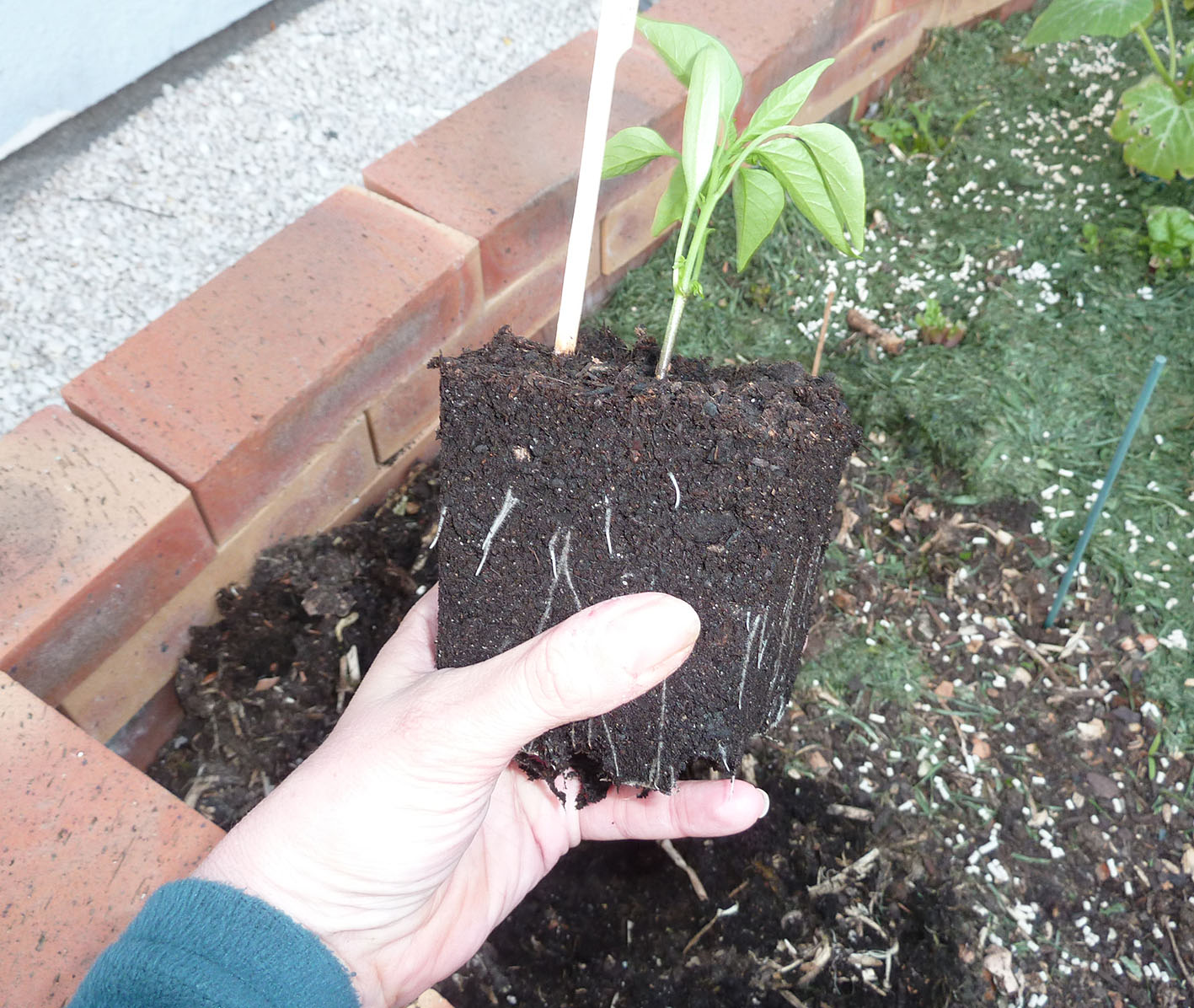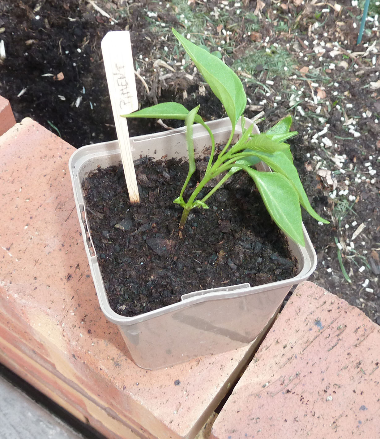 Lorsque vos plants ont atteint une quinzaine de centimètres (4 à 6 feuilles), transplantez les dans votre micro potager, à un emplacement où les autres plants une fois grands ne leur feront pas d’ombre. Pour ce faire, creusez un trou de la taille du pot contenant votre pied de poivrons. Dépotez votre plant sans en briser la motte, trempez là éventuellement dans de l’eau à température ambiante et implantez la dans le trou. Formez une cuvette au pied du plant et arrosez généreusement sans mouiller les feuilles. Paillez le pied avec du mulch (tonte, cartons, paille)