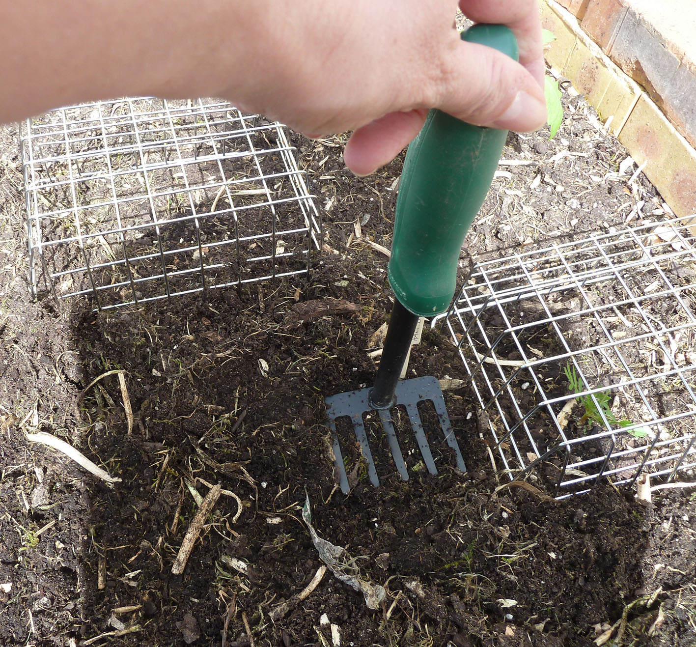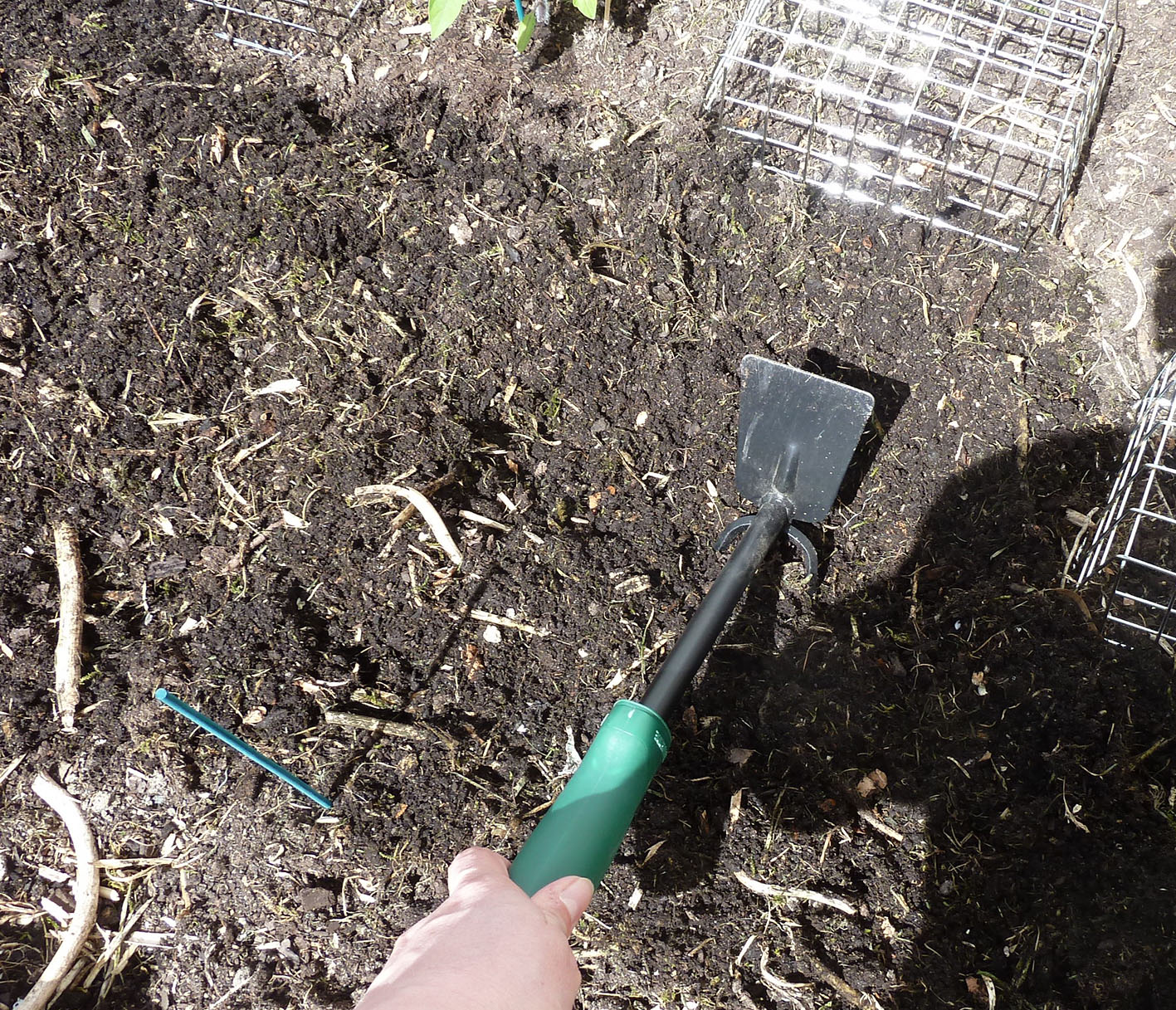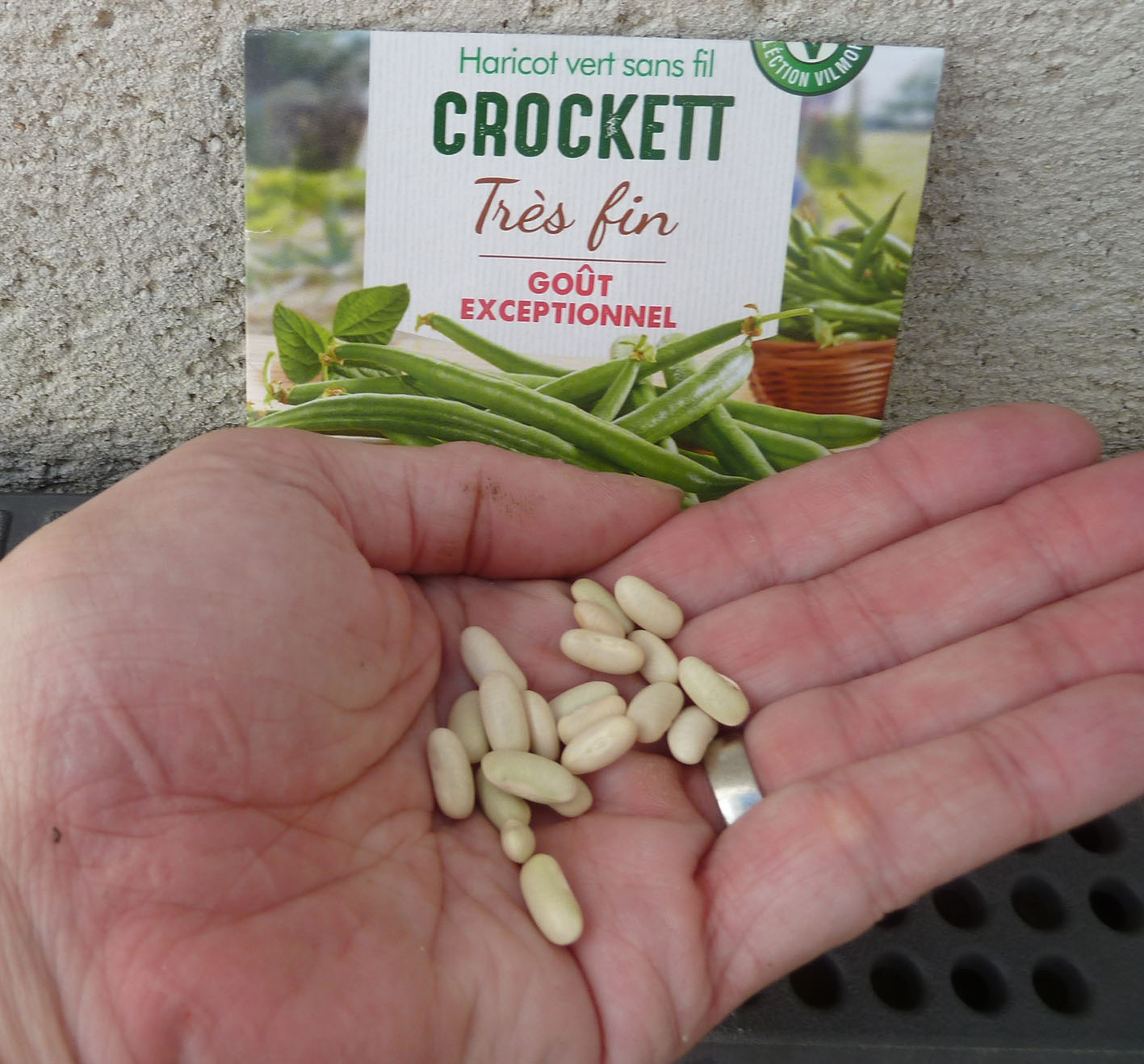 Graines de haricots nains – Préparation du sol – Semis – Terre tassée au râteau.
