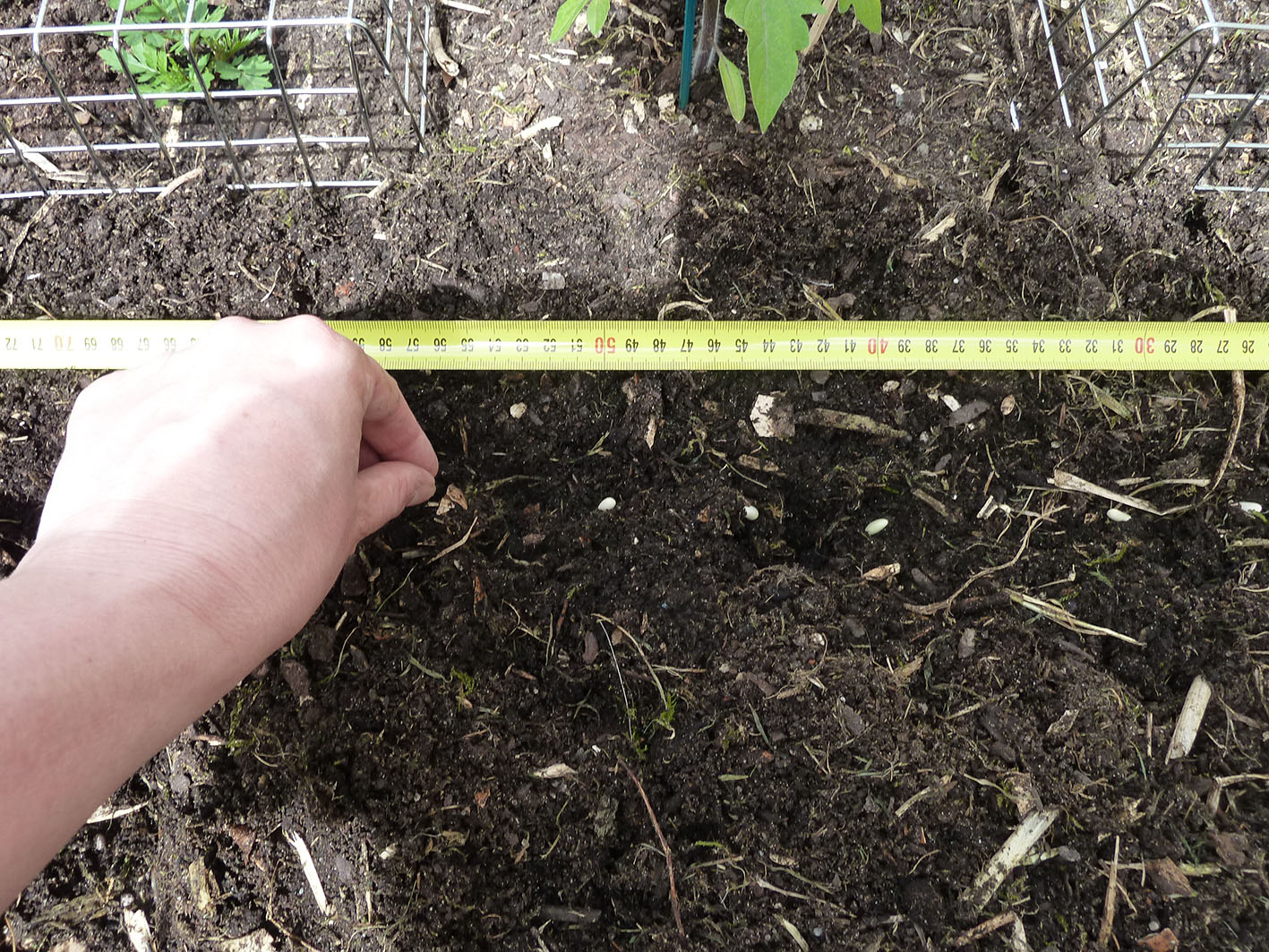 Pour les haricots nains : Binez légèrement le sol et régalez la terre avec un petit râteau. Semez en rang, une graine tous les 15 cm en espaçant les rangs d’environ 20 cm. La graine de haricot doit à peine être enfoncée dans le sol. Un dicton dit que le haricot doit voir le pied du jardinier s’éloigner.