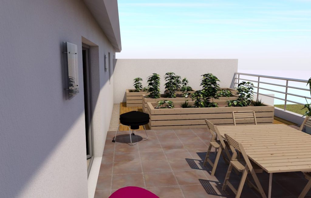 Si vous disposez d’un toit terrasse ou d’une terrasse accessible, il est tout à fait possible d’y aménager un potager. Néanmoins, les structures porteuses, notamment le plancher, devront supporter le poids des terres et leur charge en eau. Assurez vous, auprès d’un professionnel du bâtiment, que votre structure peut reprendre les charges qui y seront rapportées.